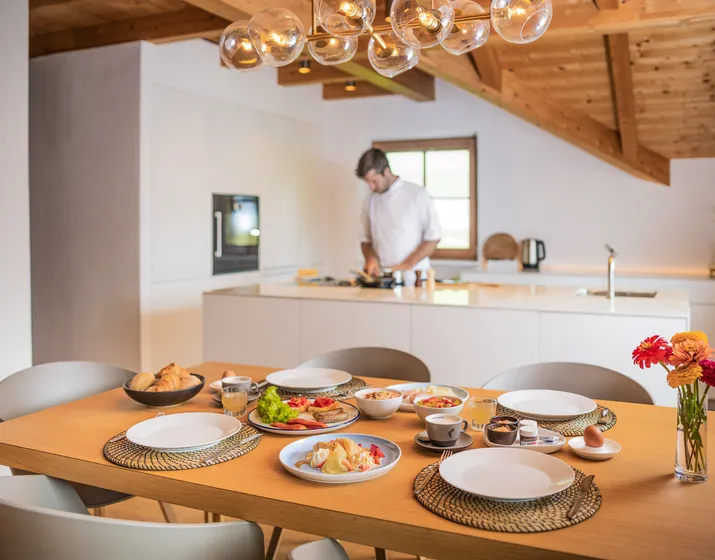 Für Alle, die sich nach einem noch persönlicheren und exklusiveren Erlebnis sehnen, bieten wir auf Anfrage unseren privaten Kochservice an. Unser Chefkoch zaubert authentische Geschmackserlebnisse mit ausgewählten, regionalen Zutaten und geht dabei auf alle Wünsche individuell ein.